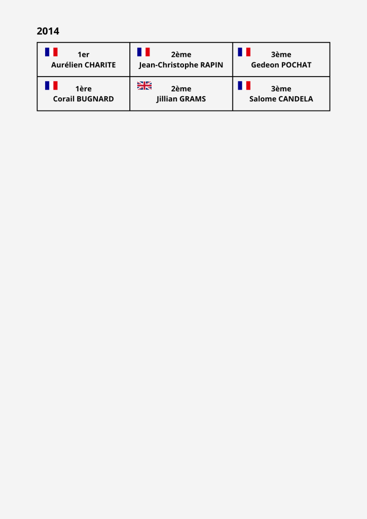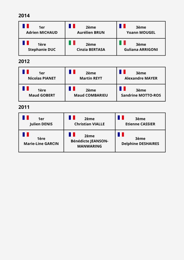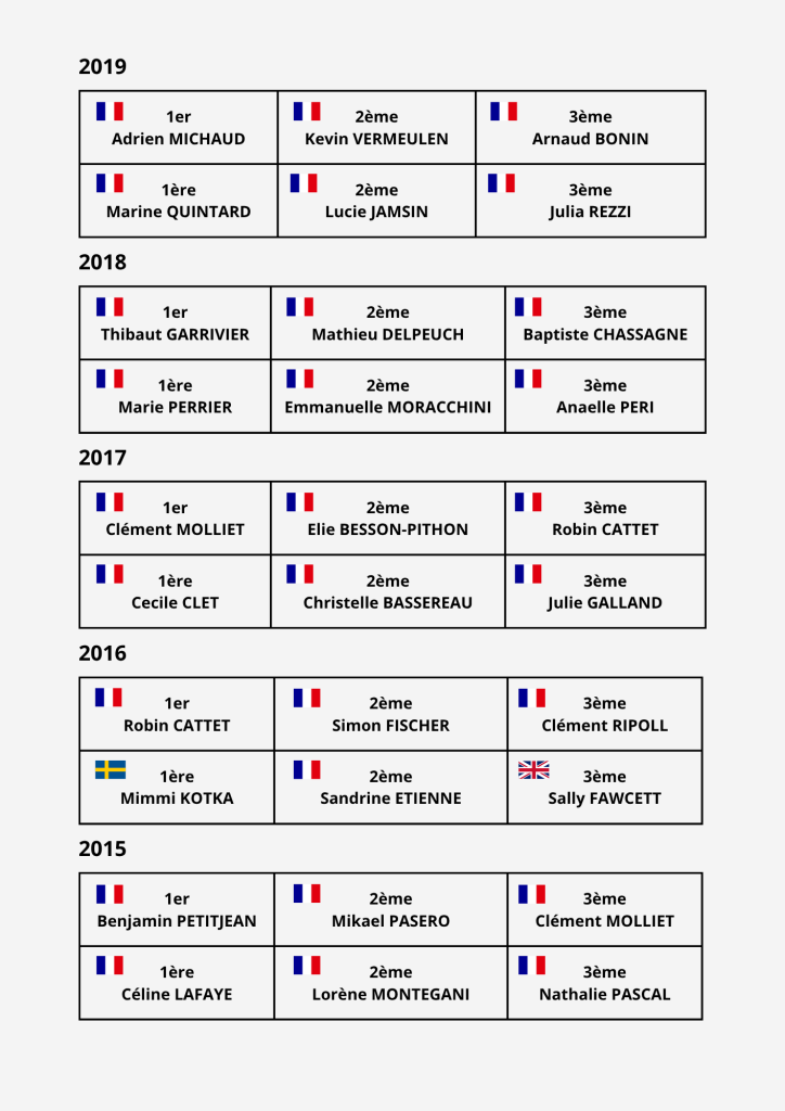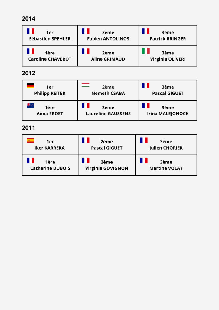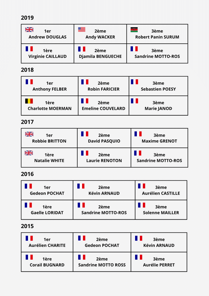 Retrouvez les résultats de toutes les éditions précédentes.